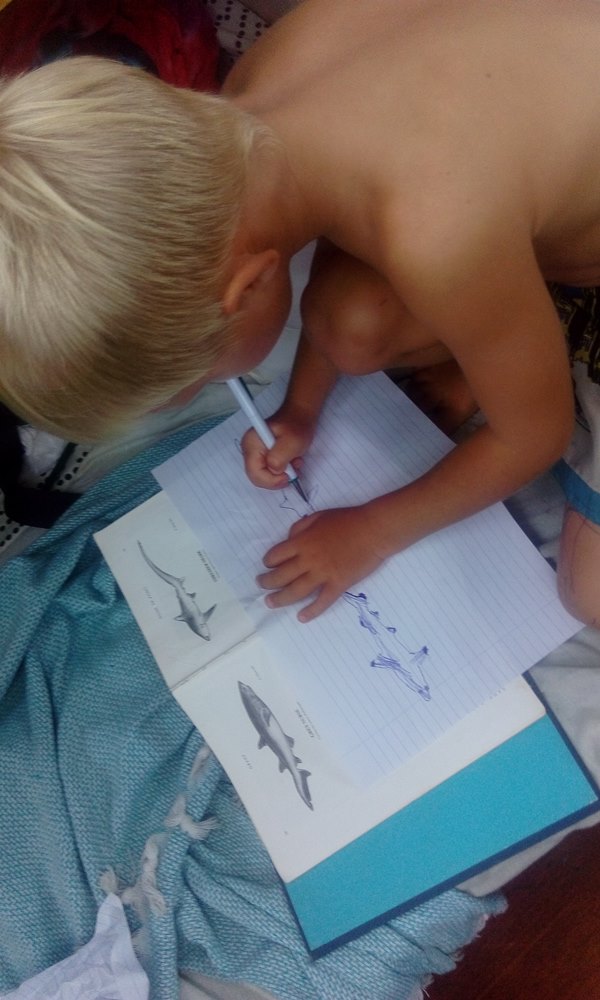 Po wyjściu z wody trzeba narysować spotkane tego dnia rekiny